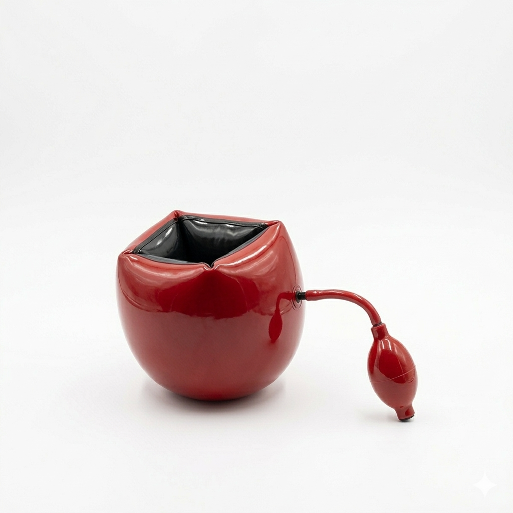 Esta manga de masturbação insuflável em látex combina luxo fetichista com prazer personalizado. Fabricada inteiramente em látex natural, envolve com firmeza e permite ajustar a pressão interna para criar desde uma sensação suave e envolvente até um aperto intenso. O interior liso adapta‑se ao formato do corpo, enquanto o acabamento brilhante e a textura elástica elevam a excitação visual e tátil.